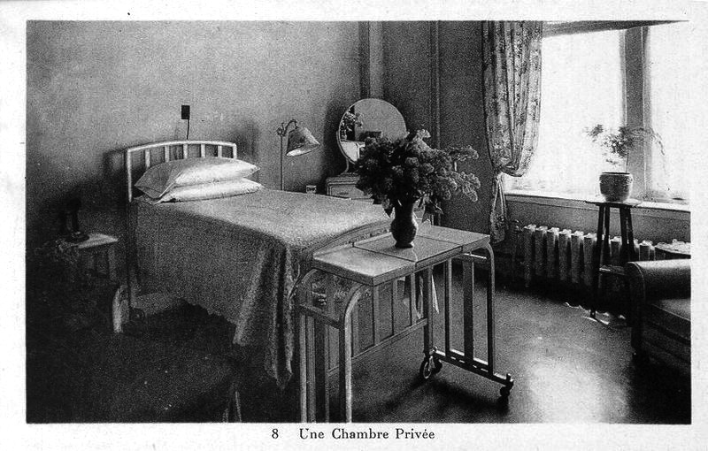 Chambre privée de l'Hôpital de l'Enfant-JésusLes chambres privées des hôpitaux, comme celle-ci à l'Enfant-Jésus, pouvaient accueillir des enfants dont les parents payaient la chambre et les soins reçus. Hôpital de l'Enfant-Jésus, chambre privéeSource : BANQ, Centre d'archives de Québec, Collection Magella Bureau, P547,S1,SS1,SSS1,D1,P1783, sans date. |