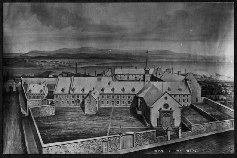 Oeuvre des enfants trouvés ( vers 01/1801-16/04/1845 )Du XIXe siècle jusque dans les années 1960 au Québec, celles qu'on appelaient « filles-mères » et leurs enfants « illégitimes » ont été fortement stigmatisés. À Québec, il n'était pas rare qu'elles accouchent à l’Hôpital de la Marine et à la prison. En 1801, le gouvernement britannique mandate les Augustines de l’Hôtel-Dieu de Québec pour prendre en charge les enfants nés hors mariage, en plus des enfants « trouvés », souvent aussi de naissance illégitime. Il demande aux religieuses de tenter de retrouver les parents des enfants abandonnés (7% des cas) ou de les placer, selon l'âge, chez des nourrices (environ 39% de tous les enfants ayant transité par l'Oeuvre), dans des familles, vers l'âge de 3 ou 4 ans, et enfin en apprentissage au sortir de l'enfance, pour qu'ils soient en mesure de gagner leur vie. Hôtel-Dieu de Québec en 1878Source : ANQ, fonds Livernois, P560, S1, P203. Tableau des enfants abandonnés reçus à l'Hôtel-Dieu de Québec, depuis le 15 novembre 1800, jusqu'au 16 avril 1845Source : Archives du monastère de l'Hôtel-Dieu de Québec Tableau synthèse réalisé par les Augustines. Il est reproduit dans De la Broquerie FORTIER, « Les « enfans trouvés » de l’Hôtel-Dieu de Québec – 1800-1850 (suite) », Laval médical, 34 (décembre 1963), p. 1246. Le mot enfant est bel et bien écrit sans « t ». |