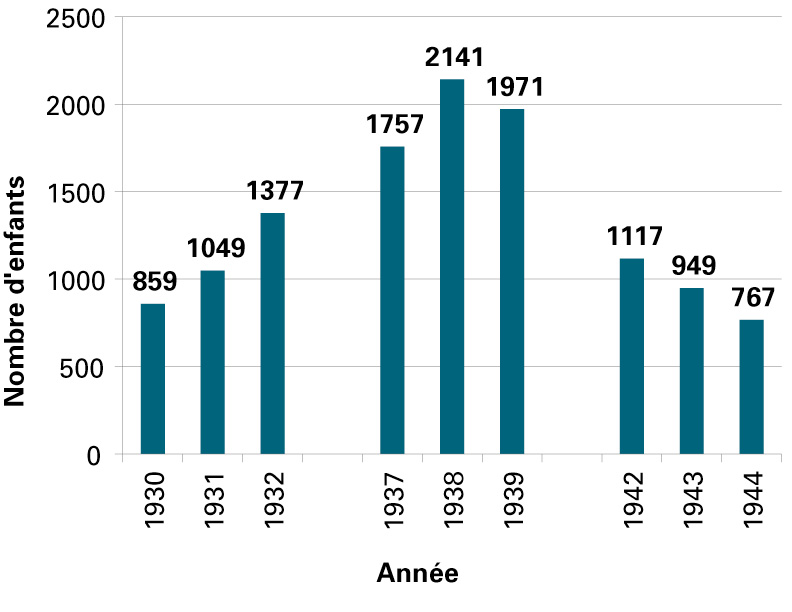Nombre d'enfants assistés par le Secrétariat des Familles de Québec, 1930-1944